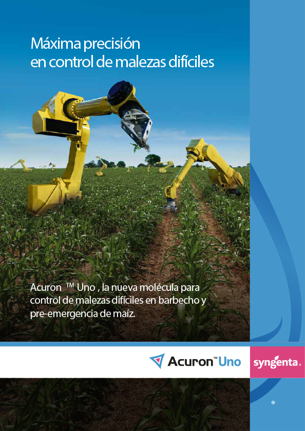 ACURON TM UNO controla un amplio espectro de malezas de hoja ancha y gramíneas, permitiendo al cultivo crecer sin competencia durante la primera etapa de su ciclo, que resulta especialmente crítica para su éxito.